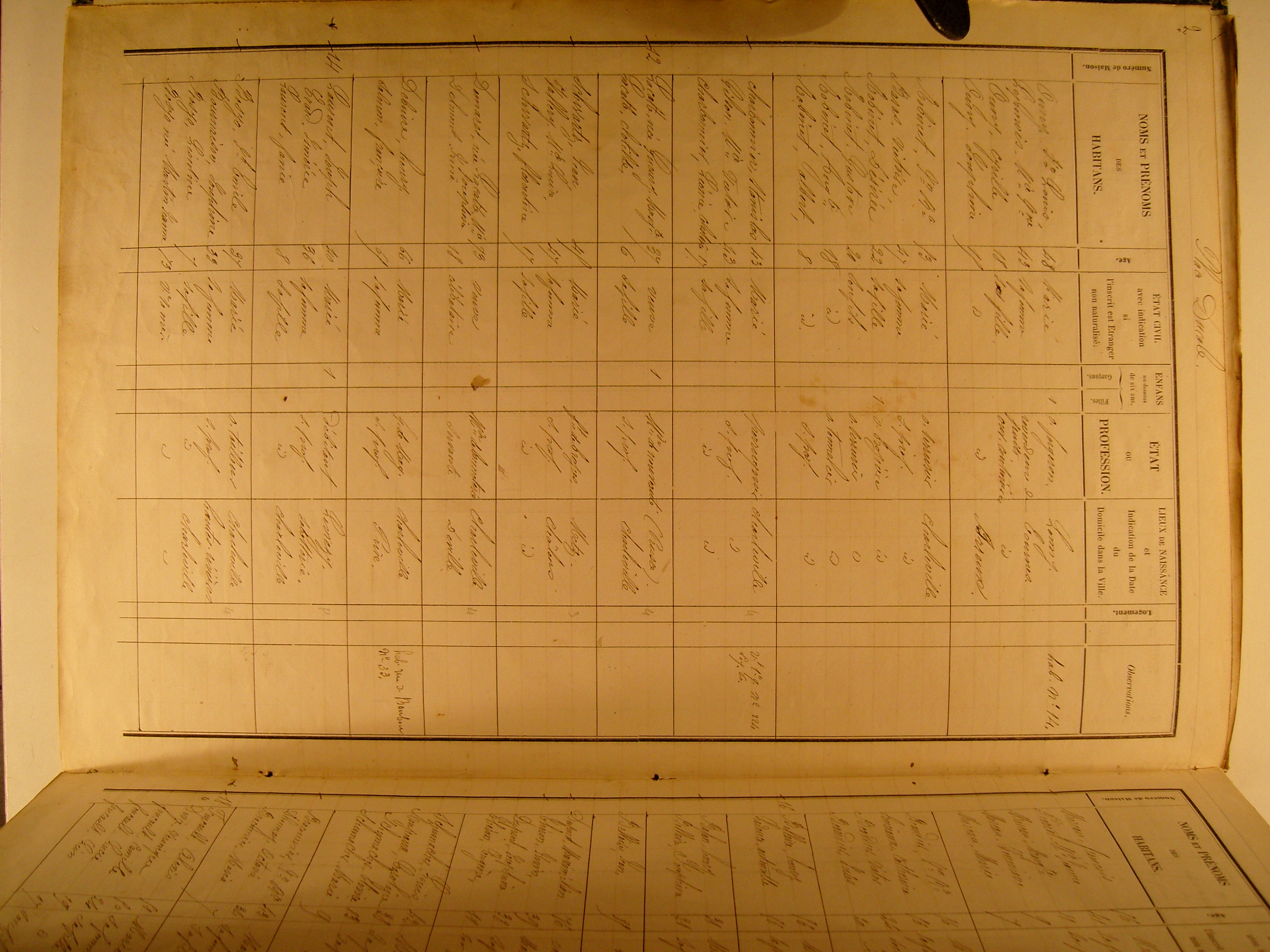 Page du recensement annuel de la ville de Charleville en 1856, pour le quartier Saint Ignace
