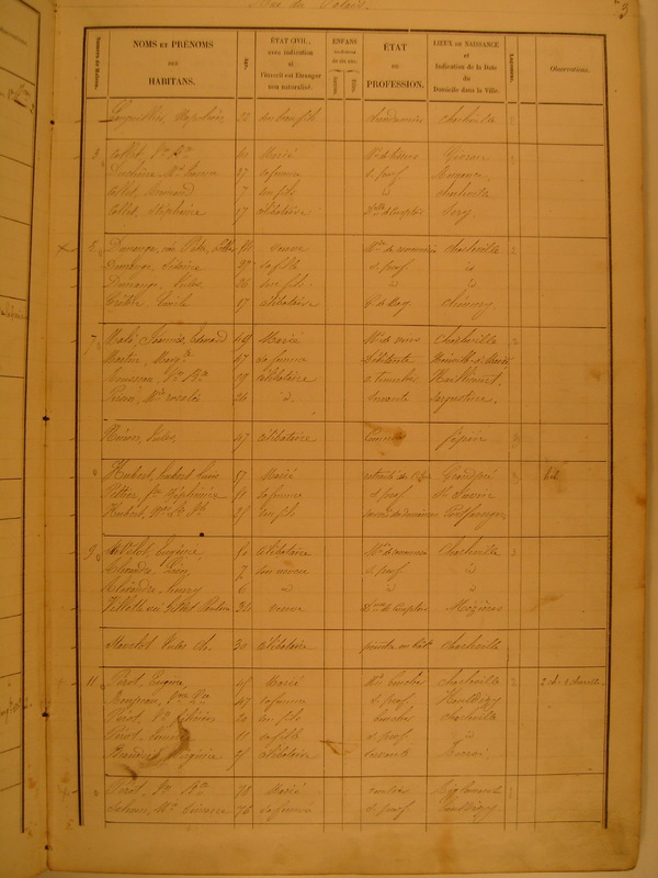 Page du recensement annuel de la ville de Charleville en 1856, pour le quartier Notre Dame