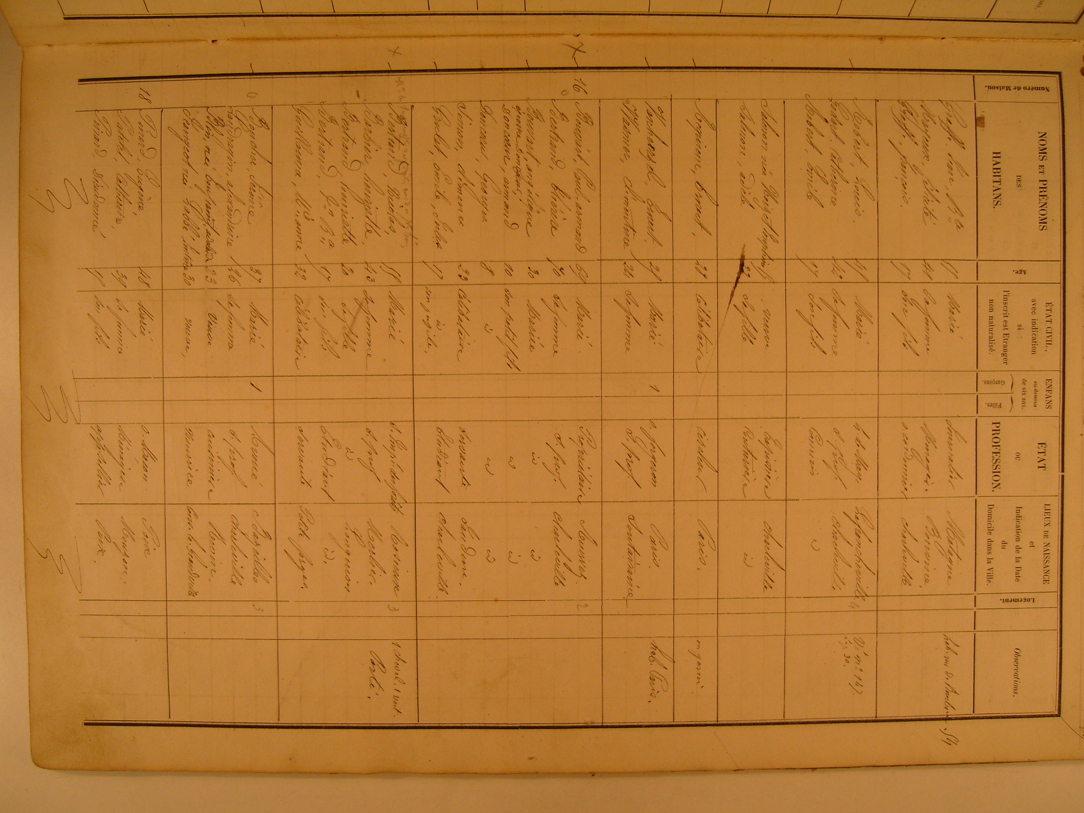 Page du recensement annuel de la ville de Charleville en 1856, pour le quartier Notre Dame