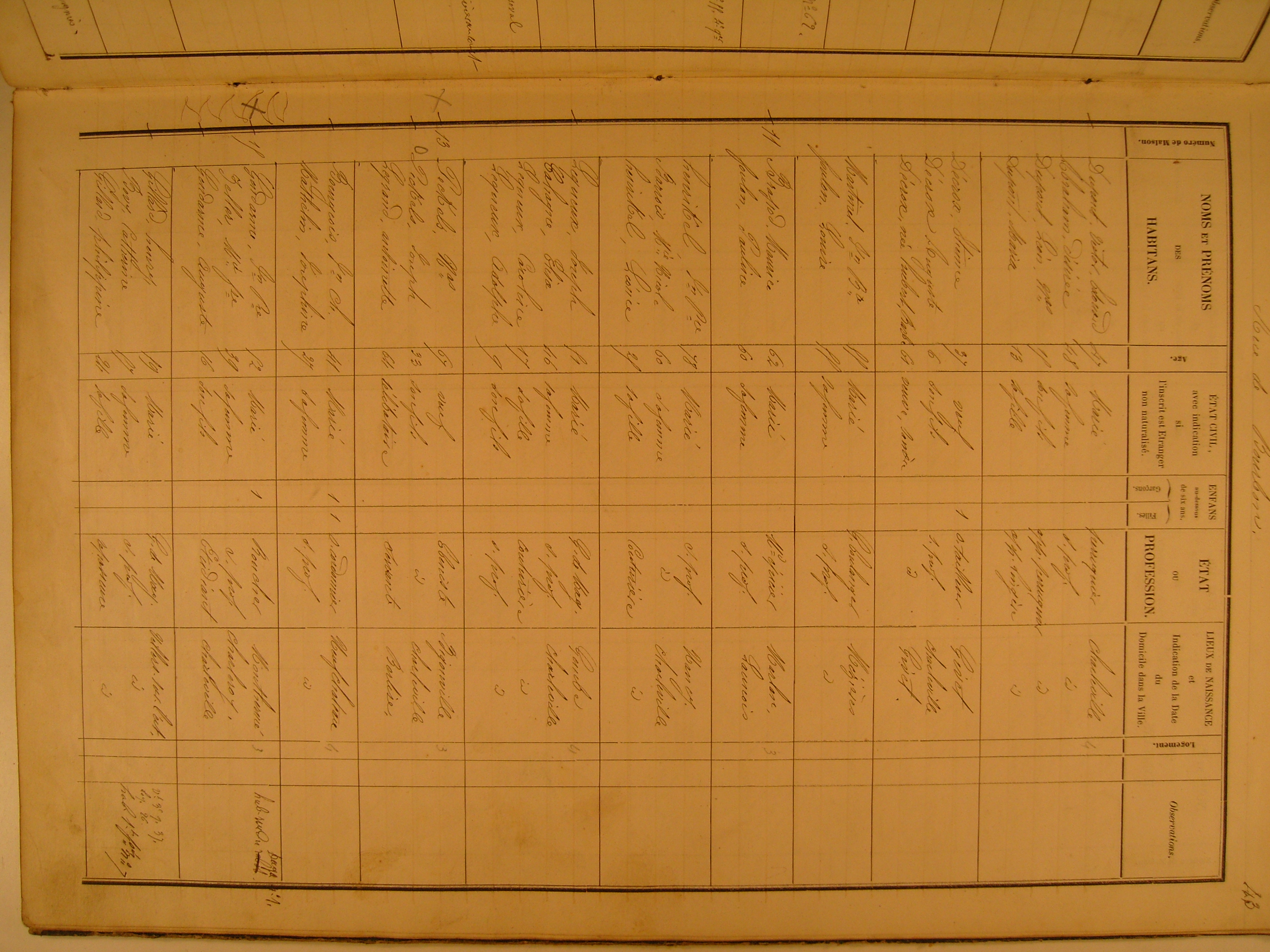 Page du recensement annuel de la ville de Charleville en 1856, pour le quartier Notre Dame