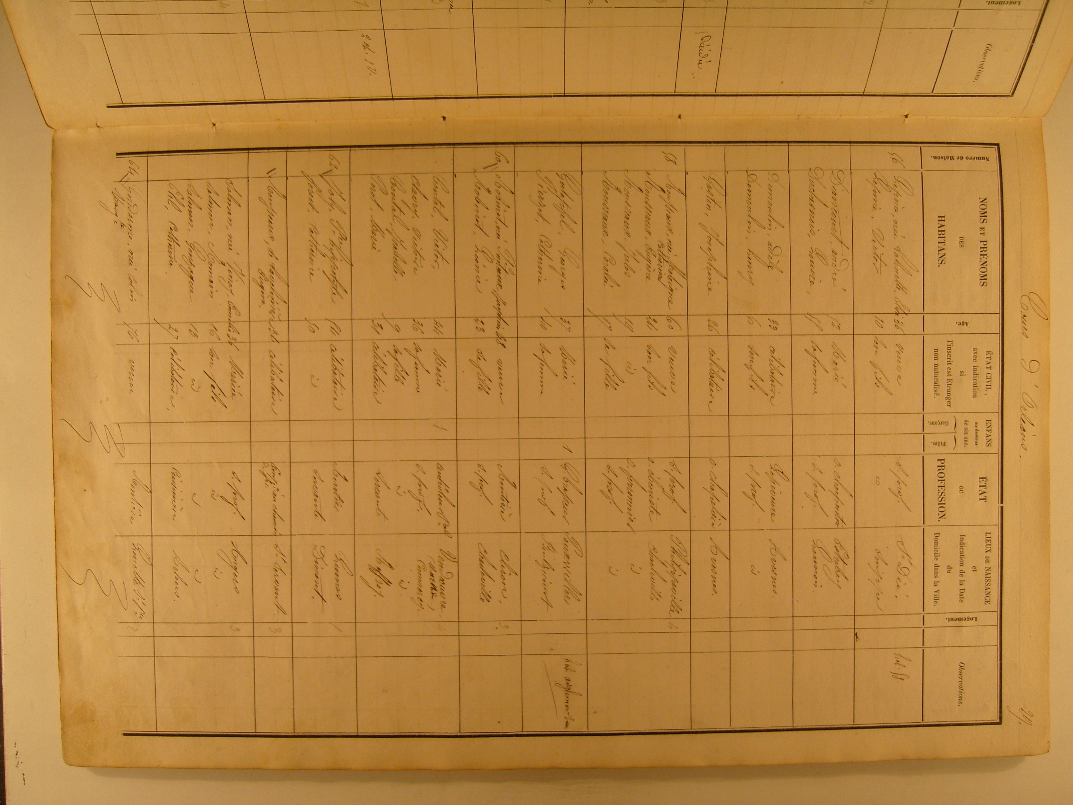 Page du recensement annuel de la ville de Charleville en 1857, pour le quartier des Faubourgs