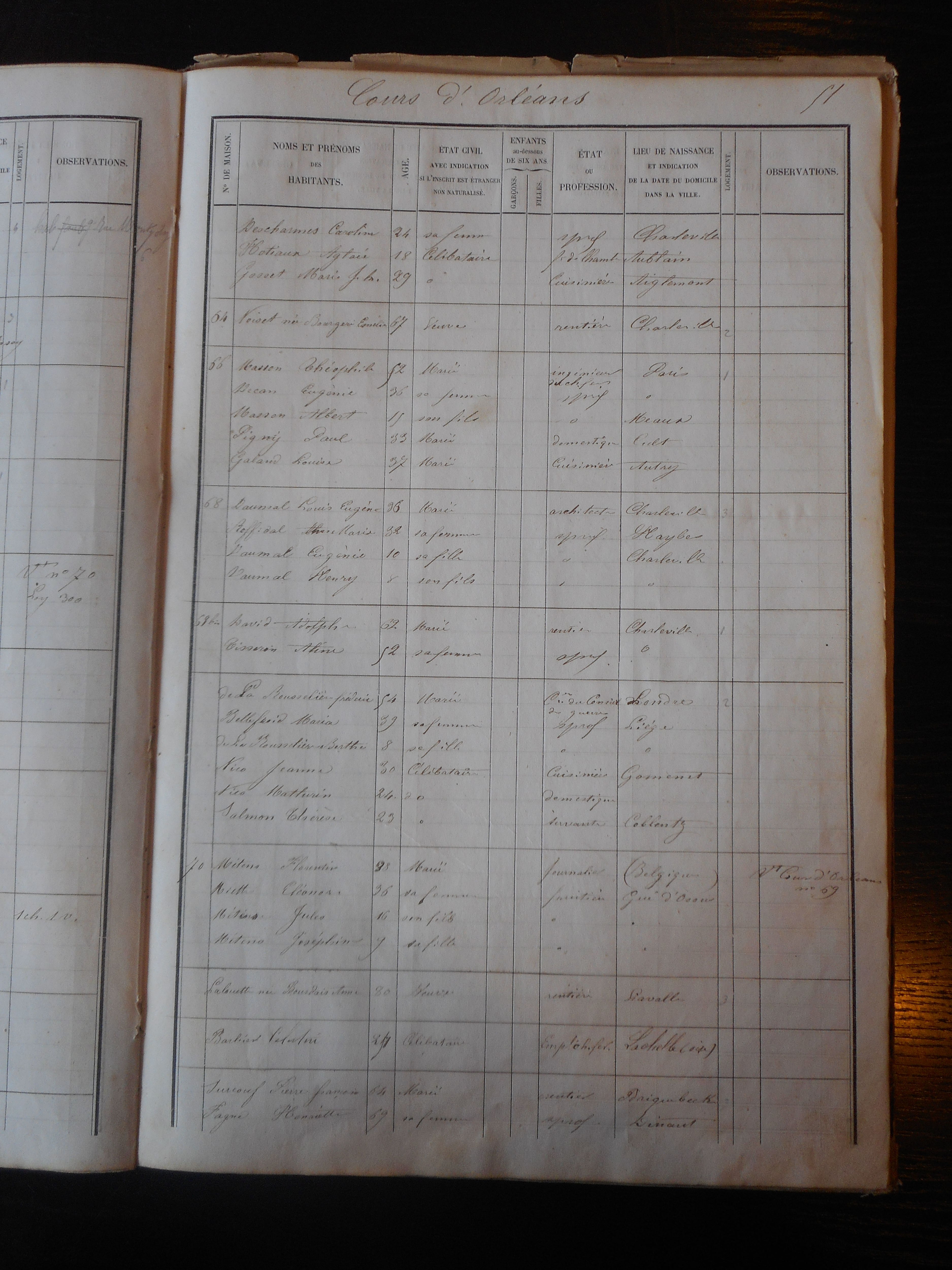 Page du recensement annuel de la ville de Charleville en 1867, pour le quartier des Faubourgs